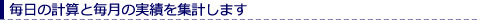 | 社員集計 | 所定内時間数、残業時間、深夜時間等をそれぞれの項目に分けて集計します。また、特別日は平日と分けて集計します。 |