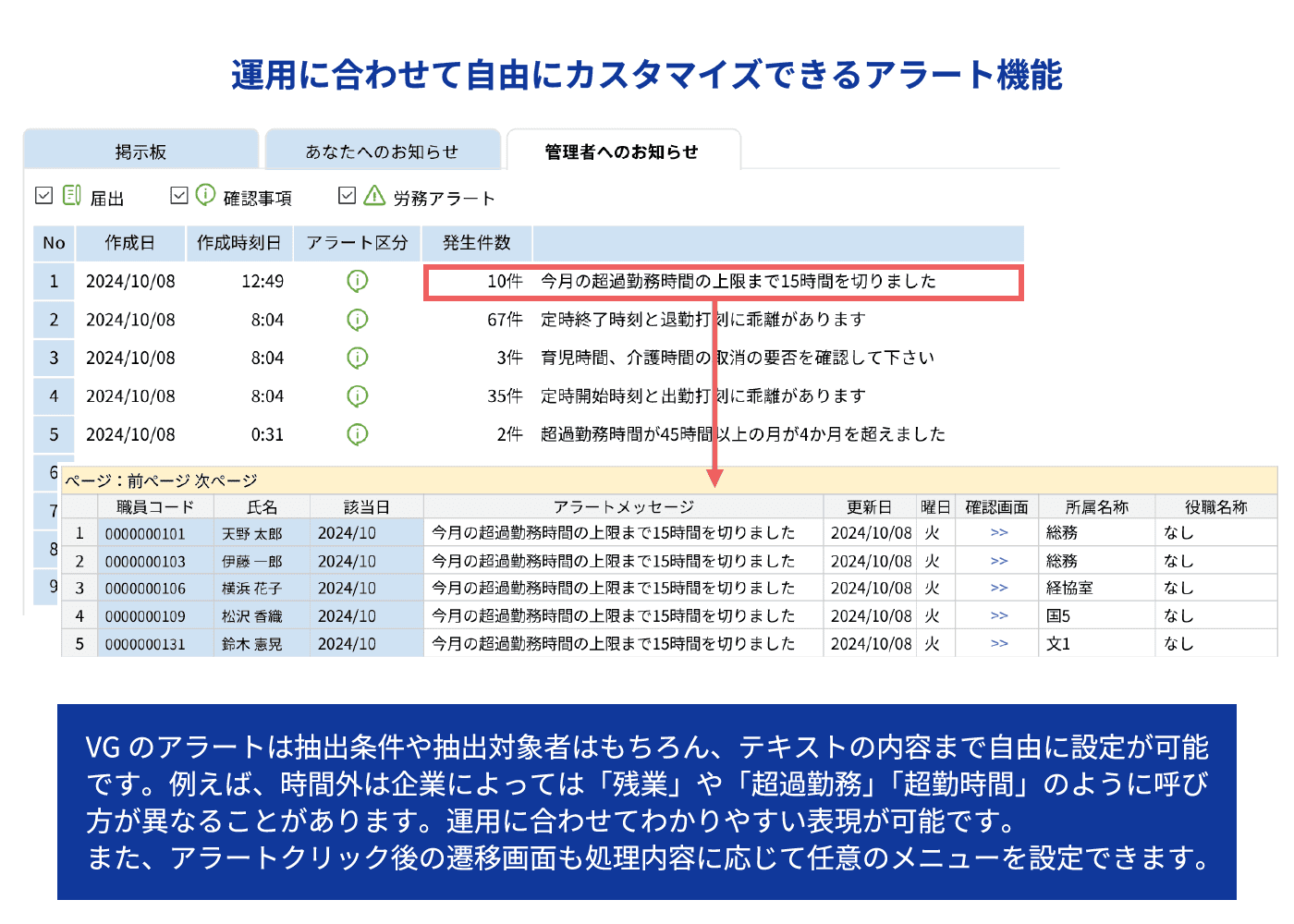 それから、アラート機能にはかなり助けられていると感じています。個人にアラートが出ることで、以前と比べて各職員が、自分自身の勤務時間などをより意識するようになったのではないでしょうか。